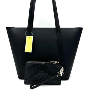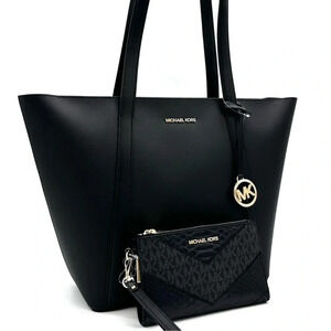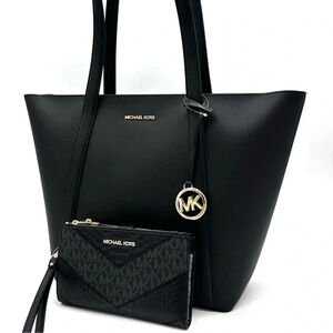Michael Kors Pratt Large Signature Logo Tote Bag & Double Zip Wallet Black (NWT)