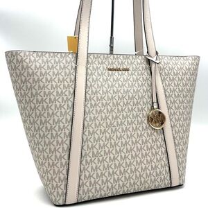 Michael Kors Pratt Large Signature Logo Tote Bag Light Cream Multi