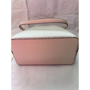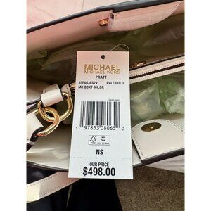 Michael Kors Pratt Medium Bucket Shoulder Bag Pale Gold Leather Logo Stripe
