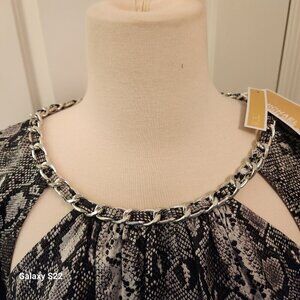 Michael Kors Print/Silver chain detailed dress. NWT. Size 3 X