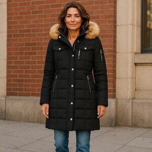 Michael Kors Puffer Black Coat Fur Hooded Jacket NEW!!