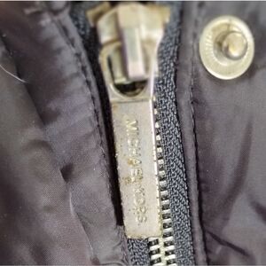 Michael Kors Winter Puffer Coat Gray Faux Fur Trimmed Removable Hood. No Size Tag Fits M/L measurements included measurements pit to put 24' waist 23' length 36'. coat also includes a 10' zipper on each side