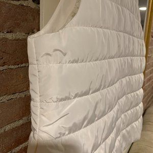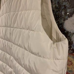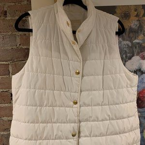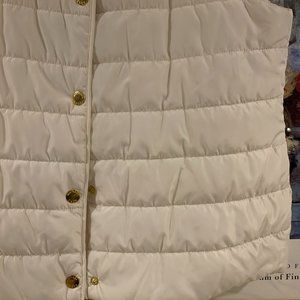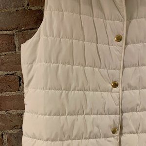 Michael Kors~ Puffer Vest. Beautiful bone color. Gold snaps with MK logo. Shell, Filling, Lining = 100% polyester. ((Very clean....except at top of collar, in middle. ... see last 2 pics. Should clean up in wash.))