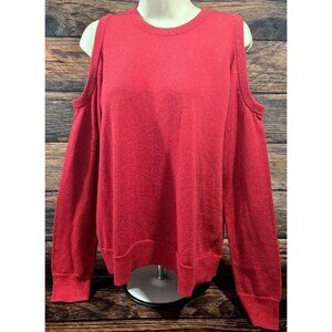 Michael Kors Pullover Sweater Cold Shoulder Romantic Red Metallic