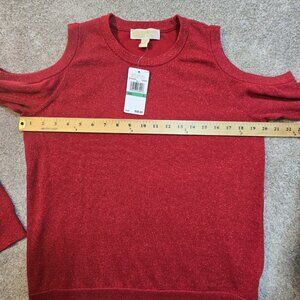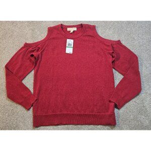 Michael Kors Pullover Sweater Cold Shoulder Romantic Red Metallic Women's L NWT