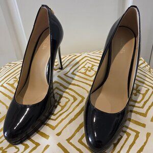Michael Kors Antoinette Luggage Gold Padlock MK Logo Pumps. Stylish, elegant pump. Beautiful and versatile. Black patent leather in excellent condition,