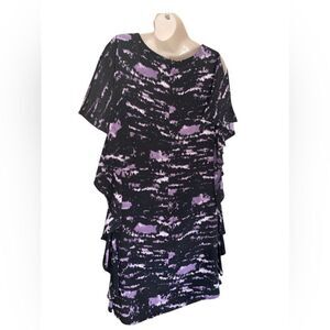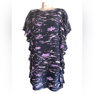 Michael Kors Purple Black Ruffle Sleeves Zip Back Size 8 Beautiful over knee