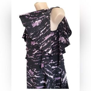 Michael Kors Purple Black Ruffle Sleeves Zip Back Size 8 Fully Lined
