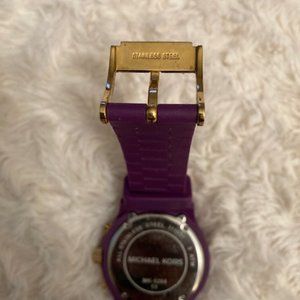 PRE-OWNED. Great condition. Stainless steel Michael Kors Purple Jelly Watch. Includes original box. Battery is needed.