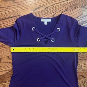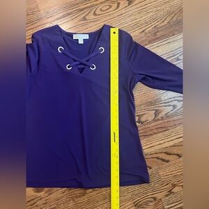 Michael Kors Purple Lace-Up Blouse 3/4 Sleeve Size Medium