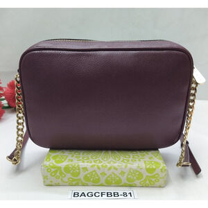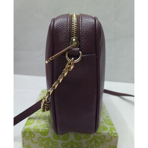 Michael Kors Purple Pebbled Leather Round Logo Zipper Crossbody Bag