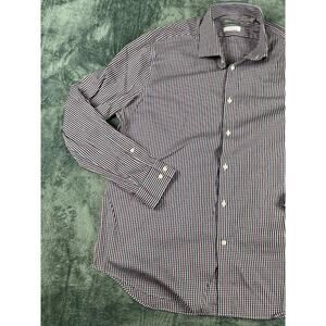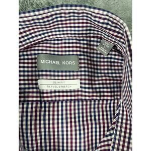 Michael Kors Purple White Check Shirt Men's XLarge Slim Fit Travel Stretch 34/35