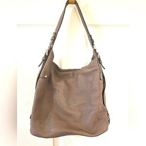 Beautiful Michael Kors Purse in grey pebbled leather, nice and neutral color will match any outfit, soft feel and look, one scratch on strap but other than that in great condition.