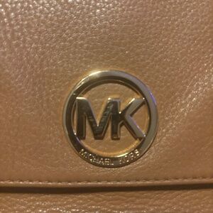 The Michael Kors Fulton collection was introduced in the early 2010s as part of the brand's accessible luxury handbag line. The Fulton series became known for its practical size and signature MK medallion hardware.