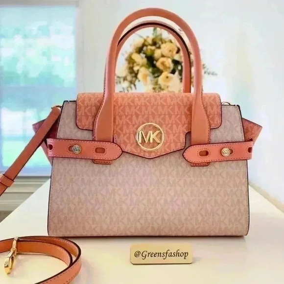Michael Kors Purse Carmen Medium Flap Satchel shoulder bag sherbert new