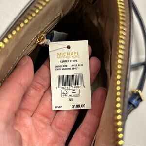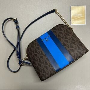 Michael Kors Purse Cindy Dome Blue Center Stripe Brown MK Logo Bag Crossbody NWT