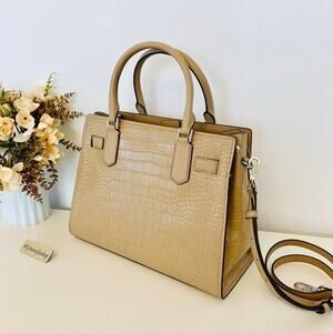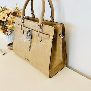 Michael Kors Purse Hamilton Medium Leather Satchel Camel