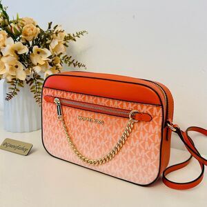 Michael Kors Purse Jet Set Large Ombré Signature Logo Crossbody Body Red Clay