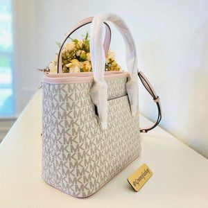 Michael Kors Purse Jet Set Travel XS Carryall Tote Top Zip vanilla signature