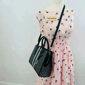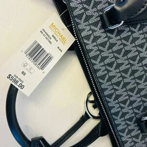 Michael Kors Purse Medium Sheila Signature Logo and Metallic Satchel Black