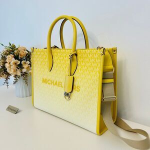 Michael Kors Purse Mirella Medium Ombré Logo Tote Bag Daisy Yellow