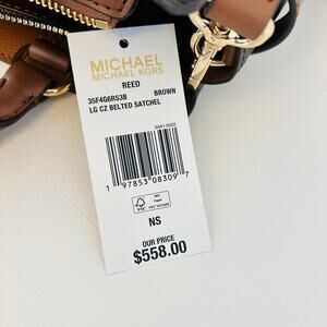 Michael Kors Purse & Wallet Reed Large Logo Belted Satchel Brown MK