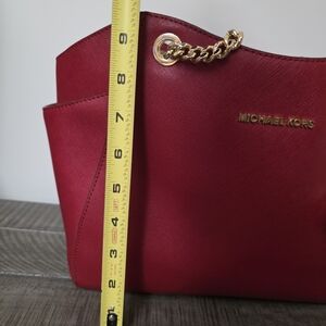 Michael Kors Purse jet set travel large chain tote shoulder bag red MK
