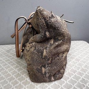 Michael Kors Python Effect Bag Tote Embossed Leather Snakeskin Print Tan Black