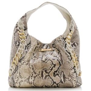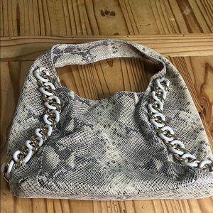 Michael Kors Python embossed chain hobo in light grey and beige color. Is in very good condition- interior clean in exterior in great shape, Stylish snake print design. Elegant chain accents. Perfect for any occasion.