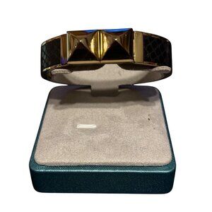 Elevate your style with this luxurious Michael Kors bracelet. Its python-embossed leather paired with a golden finish adds a touch of elegance and sophistication. The hinged design ensures comfortable wear and easy removal, making it a versatile accessory for any wardrobe. Experience timeless fashion and make a statement with this exquisite piece.