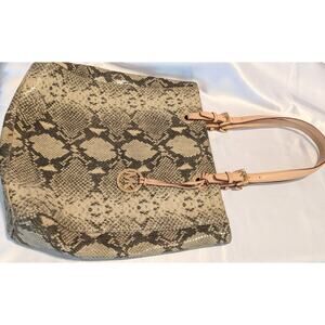 Michael Kors Python Embossed Leather Large Tote Snakeskin Neutrals GUC