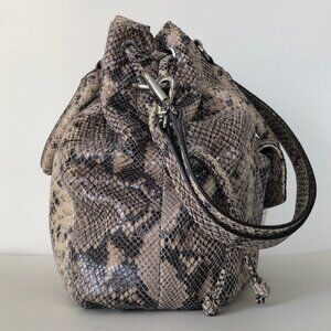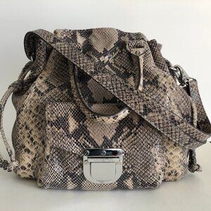 Michael Kors Python Embossed Leather Satchel Tan Black Dual Carry Bag Purse