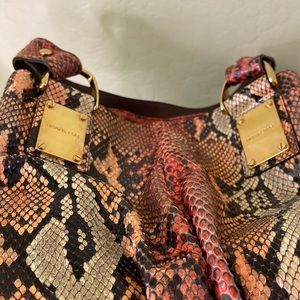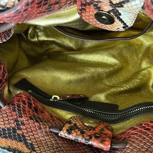This shoulder bag has been gently worn maybe 4x max. Original owner bought in Short Hills NJ $2900. Gold tone hardware. Dual straps. Snap closure. Protective feet. Strap drop. 8.25”. Height 11.5. Width 15”. Depth 5”. Inner zip and slip pockets. Drawstring on zippered sides. Excellent condition. Non smoker.