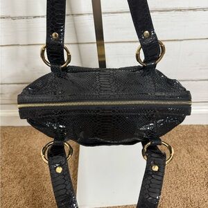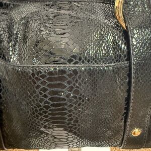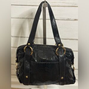 Michael Kors Black Patent Snake-Embossed Designer Handbag