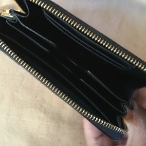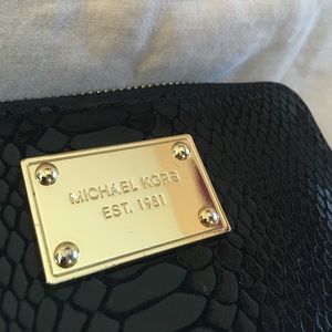 Authentic MK Python Leather Zip-Around Wallet/wristlet. Excellent condition. Gold-tone hardware. Black leather lining. Interior: 4 open pockets and three credit card holders. One open pocket for iPhone.