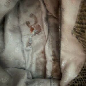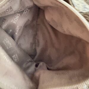 Michael Kors - Python Embossed Leather Shoulder Bag - Gray/Tan Faux python snakeskin leather large shoulder bag with MK logo hardware. Snap closure at top. Logo jacquard satin lining. Multiple function pockets and zippered pockets. Measurements: Width: 16” Height: 11” Depth: 5” Good condtion - some discoloration at the emblem and inside needs a good cleaning. - please review photos carefully.