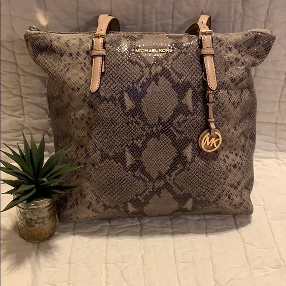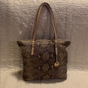 Jet Set Python top zip Michael Kors tote. It is in good condition, but you can tell it is preowned due to normal wear! Last photo helps to see up close.