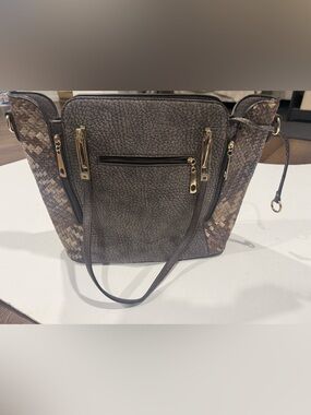 This is a Michael Kors python-embossed leather tote with gold hardware. 16X11 in perfect concoction . Beautifully made