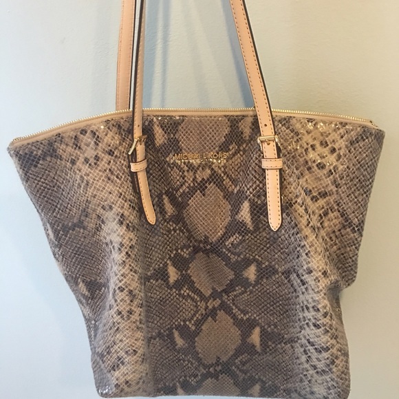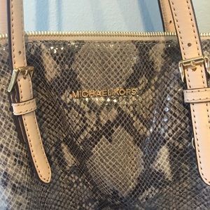 Super cute Michael Kors Python tote- outside is in perfect condition, inside has minor smudges nothing major