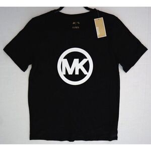 Michael Kors QR451FEECG Women's Sz Small Black Cotton Circle-Logo T-Shirt