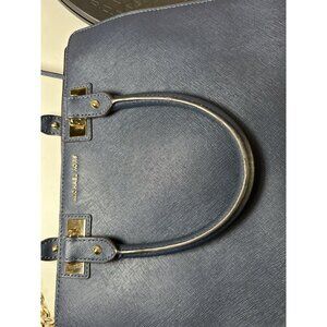 Michael Kors Quinn- Navy Blue Saffiano Leather Satchel Purse