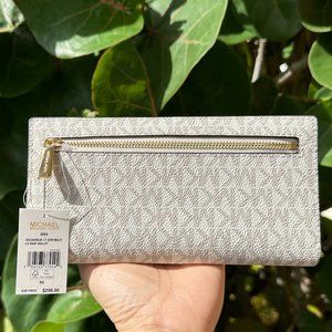 Michael Kors REED Large Flap Bifold Snap Wallet MK Light Cream