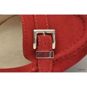 Michael Kors RORY Suede Leather Buckled Moc Loafer Flat Slip-On Red 6 New