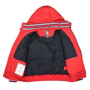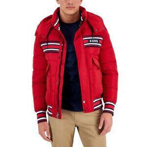 Michael Kors Racing Stripe Accent Hooded Full Zip Men's Puffer Coat L NWT Red