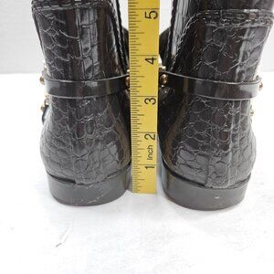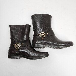Michael Kors Rain Booties Dark Brown Croc Embossed Equestrian Rubber Rainboot