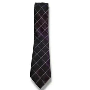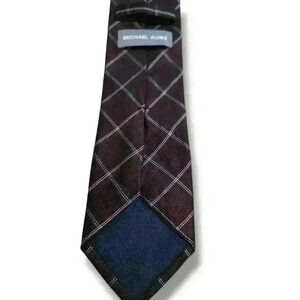 Michael Kors Randy Grid Plaid Maroon Tie Neck Workwear Casual Formal #150