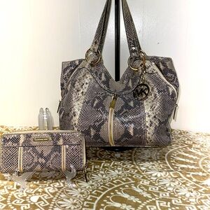 Michael Kors Rare Snake embossed Leather Moxley Purse / Shoulder Bag with wallet