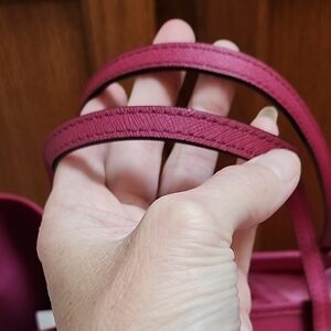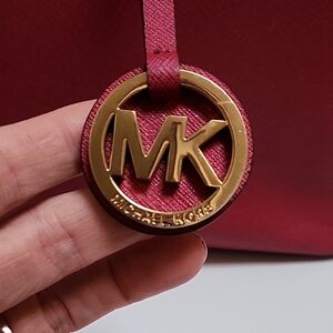 Chic and versatile tote by Michael Kors. Features a rich raspberry hue. Ideal for daily essentials. Measures 16L x 11H. Gold hardware.