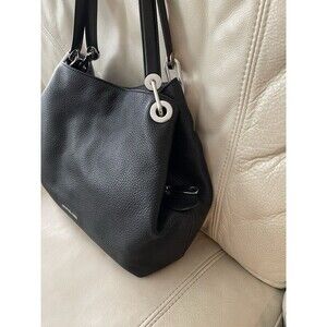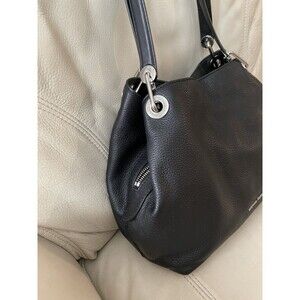 Michael Kors Raven Pebbled Leather Silver Hardware Shoulder Bag Large Black