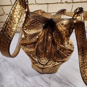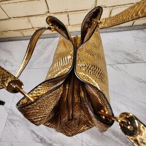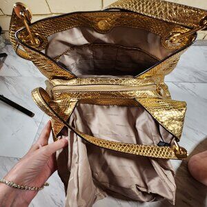 Michael Kors Raven Snakeskin Gold Leather Tote Bag Purse
